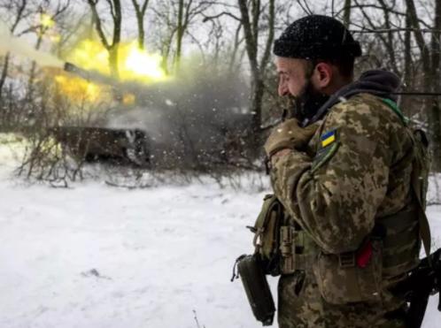 Một khẩu lựu pháo tự hành 122mm của quân đội Ukraine khai hỏa vào một vị trí của Nga vào ngày 18/2 gần Bakhmut, Ukraine. Ảnh Newsweek