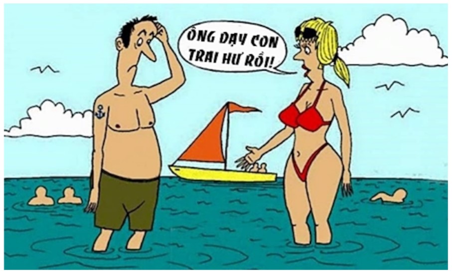 Không thấy hồi âm, bà ta quay lại thì thấy chồng cũng đang bị một bộ bikini hớp hồn. Tát một phát rõ mạnh vào mặt lão ta, bà gắt: