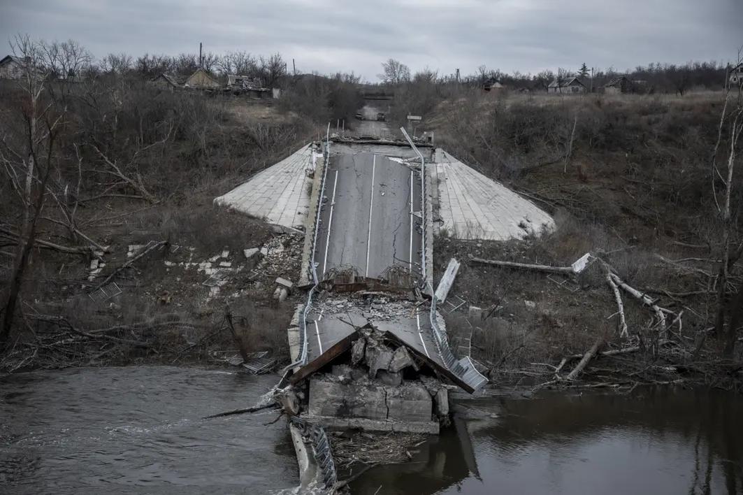 Ít nhất hai cây cầu ra khỏi Bakhmut đã bị phá hủy trong hai ngày qua. Ảnh Anadolu/Getty Images