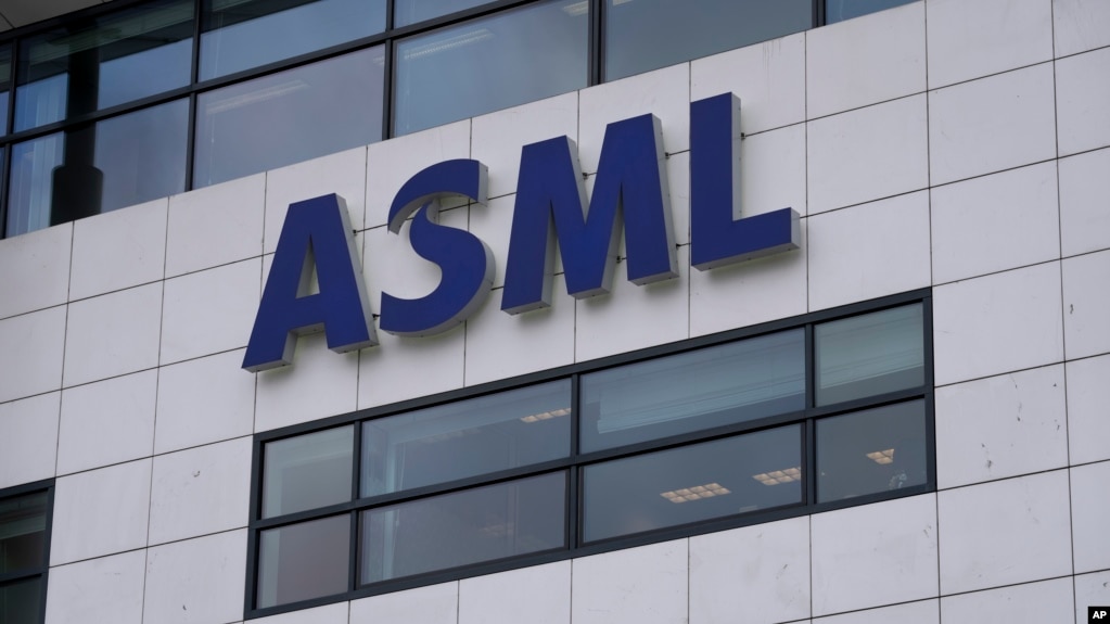 Logo của ASML, nhà sản xuất trang thiết bị bán dẫn hàng đầu của Hà Lan, tại trụ sở chính ở Veldhoven.