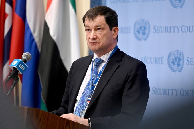 Phó đại sứ Nga tại LHQ Dmitry Polyanskiy phát biểu tại trụ sở LHQ ở New York, Mỹ, ngày 25/4/2022. Ảnh: Reuters.