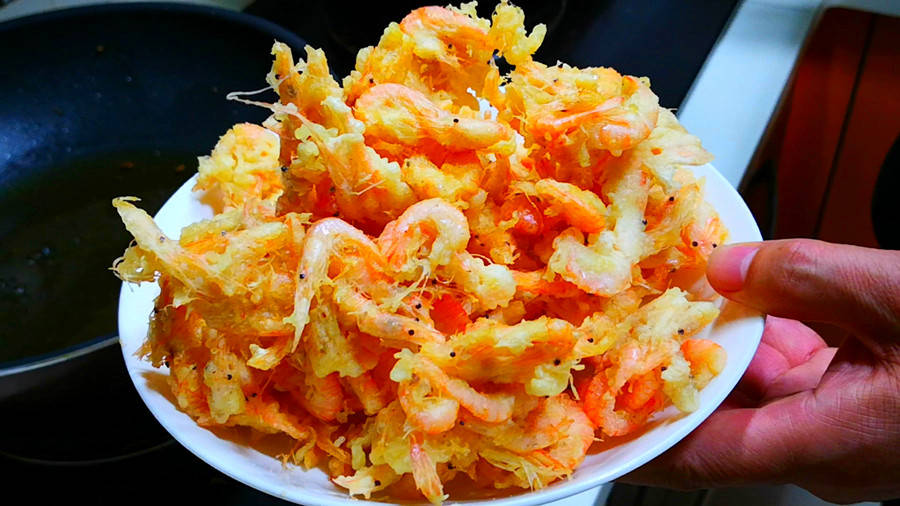 Chiên lửa vừa cho tới khi tôm chuyển sang màu vàng nhạt thì vớt ra.