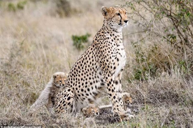 Nhiếp ảnh gia Kisemei Saruni, 35 tuổi, trong chuyến đi đến Khu bảo tồn quốc gia Maasai Mara ở Kenya đã tình cờ lưu lại khoảnh khắc báo săn mẹ bất chấp hiểm nguy tính mạng để bảo vệ đàn con nhỏ khỏi nanh vuốt của sư tử.