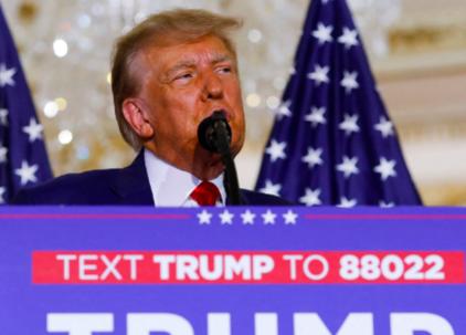 Cựu Tổng thống Mỹ Donald Trump phát biểu sau khi ra hầu tòa hôm 4-4, khi đã về Florida - Ảnh: REUTERS
