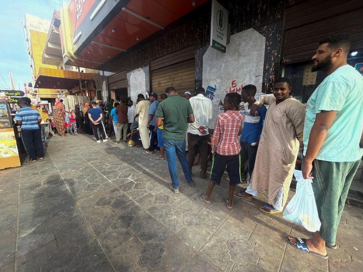Người xếp hàng để lấy bánh mì ở Khartoum, Sudan vào ngày 18/4. Ảnh: Reuters.