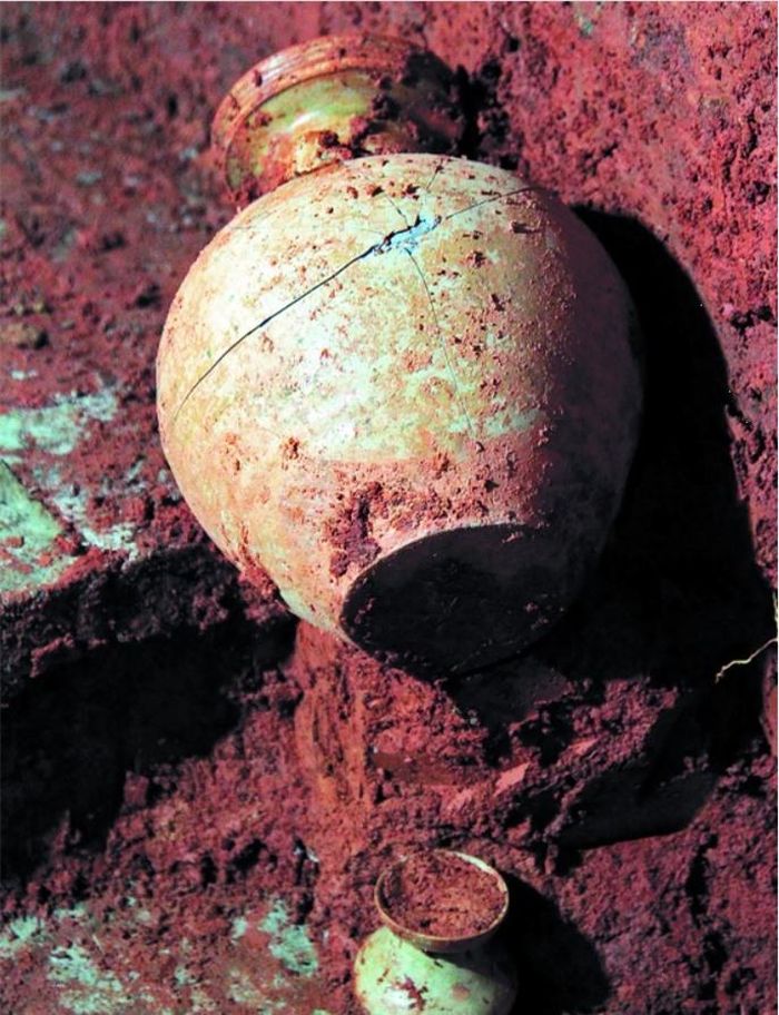 Bình gốm cổ được tìm thấy trong mộ cổ. (Ảnh: Kknews)