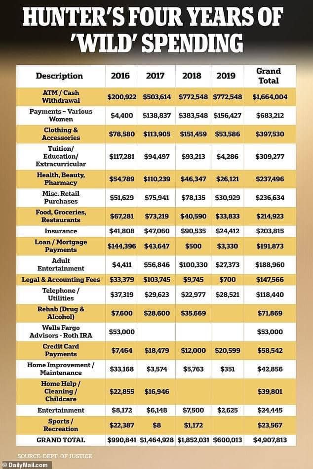 Tiền chi cho gái điếm là $683,000. Tiền đi coi những show ở truồng là $189,000.