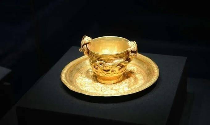 Đáng nói nhất là bộ chén vàng và đĩa vàng có đầu Chi (một con rồng không sừng). Khi được khai quật, những chiếc chén vàng được đặt úp ngược trên những chiếc đĩa vàng, chén vàng cao 1,9 cm, đường kính 7,85 cm nặng 230 gram.