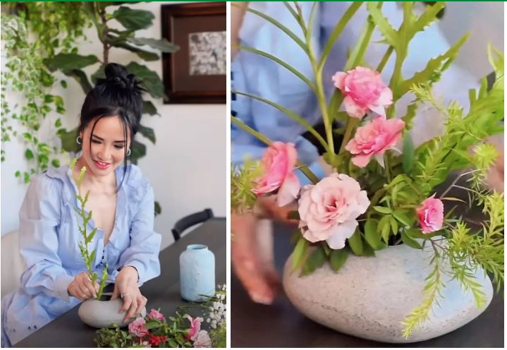 Cách đây vài ngày, trong 1 video cắm hoa từ những bông hoa có sẵn trong vườn nhà, nữ ca sĩ đã khiến dân mạng xôn xao với chiếc bình lấy cảm hứng từ hòn đá trong nhà. Chiếc bình gốm tuy có hình dáng đơn giản, nhưng khi được kết hợp với phong cách cắm hoa tự do của nữ ca sĩ lại tạo ra 1 sức hút khó tả. Vẫn là cách cắm hoa giống như bao lần, nữ ca sĩ cắm một loại hoa, sau đó dùng lá và cỏ tạo thêm các lớp cho chiếc bình. Chỉ cần như vậy, sau khi hoàn thành bình hoa, nữ ca sĩ đã khiến dân mạng trầm trồ không ngớt vì tài nghệ cắm hoa cực đỉnh của mình và không quên hỏi han về chiếc bình gốm được mua ở Tokyo.