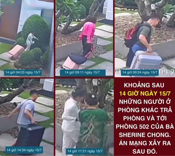 Tới quá 14 giờ một chút, những người ở các phòng khác nhau trả phòng và di chuyển xuống phòng 502 ở lầu 5, nơi bà Sherine Chong đang ở.