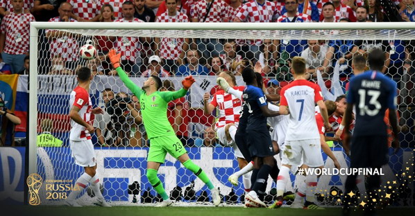 Goal ! Phút 69, thủ môn Pháp chơi bóng ở dưới, Mario Mandzukic lao vào sút trúng bóng