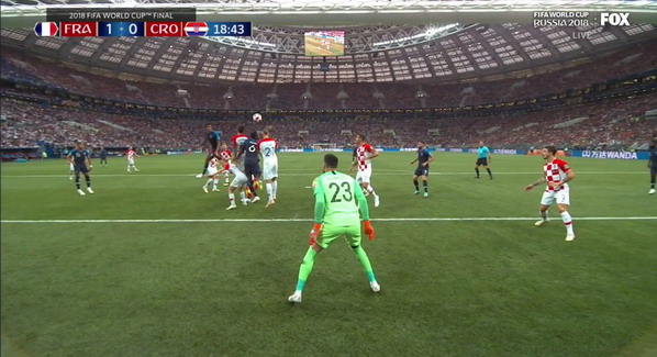 Hậu vệ Croatia phá bóng từ quả phạt góc, bóng trúng tay !!!
