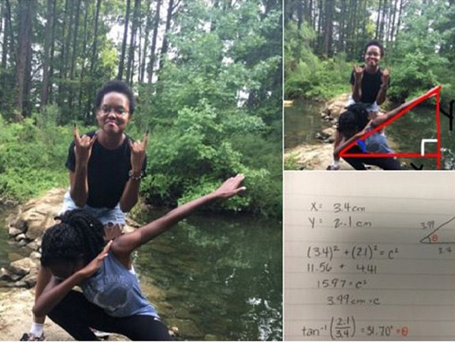 Vì bạn bè của cô nói rằng tấm ảnh cùng việc tính góc cho điệu nhảy khá hài hước nên cô đã đăng trên mạng. Cô đăng bức ảnh điệu nhảy cùng bài toán của mình và viết: “Tôi đã tính góc điệu nhảy dab. Ngày thứ 6 của bạn thì thế nào?”.