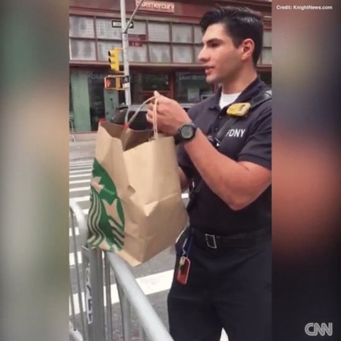 Giữa cái lúc không khí căng thẳng leo thang trên toàn New York, một nhân viên của Starbucks đã khiến mọi người ấm lòng bằng những cốc cà phê, đồ ăn dành cho lực lượng cứu hỏa và cảnh sát New York.