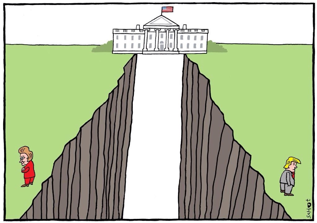 Không chỉ Ngoại trưởng Hillary Clinton, kẻ thua cuộc lớn nhất trong cuộc đua vào Nhà Trắng năm nay chính là truyền thông Mỹ. Đa số các cuộc thăm dò của nhiều đài truyền hình và tờ báo uy tín đi ngược với kết quả chung cuộc, khiến ai nấy đều ngã ngửa. Tranh: Rabel Lepper