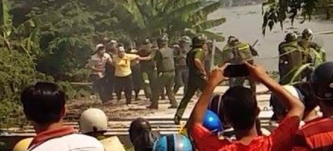 Hình ảnh được ghi lại ở Phan Thiết, Bình Thuận Việt Nam. Cậy quyền cậy thế, lũ công an Việt cộng ức hiếp dân nghèo. Người dân bị cướp đất, vùng lên và bị đàn áp thẳng tay như ngon liễu trước gió.