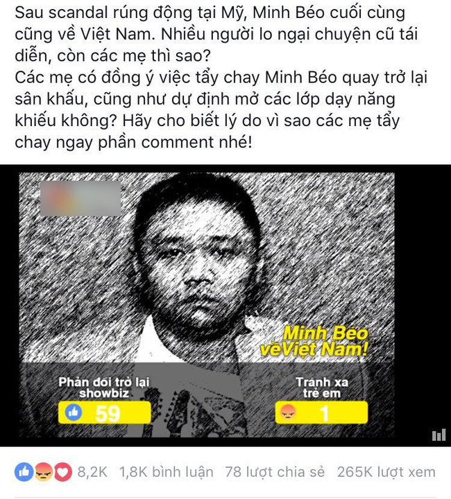Nhiều người không chỉ phản đối Minh Béo quay trở lại showbiz mà còn muốn anh phải tránh xa trẻ em.