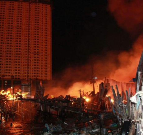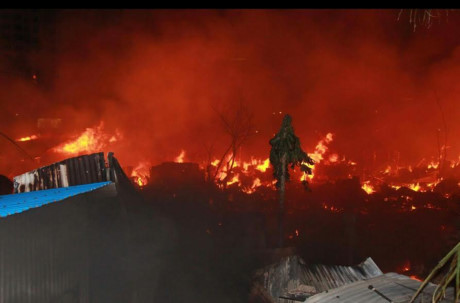 Đám cháy thiêu rụi khoảng 40 căn nhà chồ.