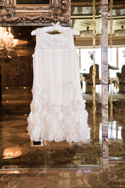 Melania tâm sự bà đã thốt lên khi trông thấy bộ váy trắng đính hoa này của Anna Sui. Ngay từ cái nhìn đầu tiên, bà đã muốn mặc nó ngay lập tức. Thiết kế có giá 465 USD (khoảng 10,5 triệu đồng).