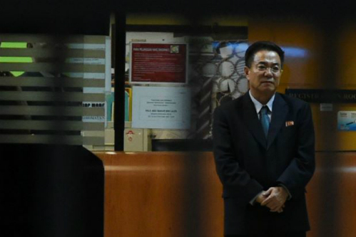 Một quan chức sứ quán Triều Tiên tại bệnh viện Kuala Lumpur, nơi giữ thi thể Kim Jong-nam. Ảnh: Reuters