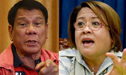 Tổng thống Philippines Rodrigo Duterte (trái) và thượng nghị sĩ Leila De Lima. Ảnh: Rappler