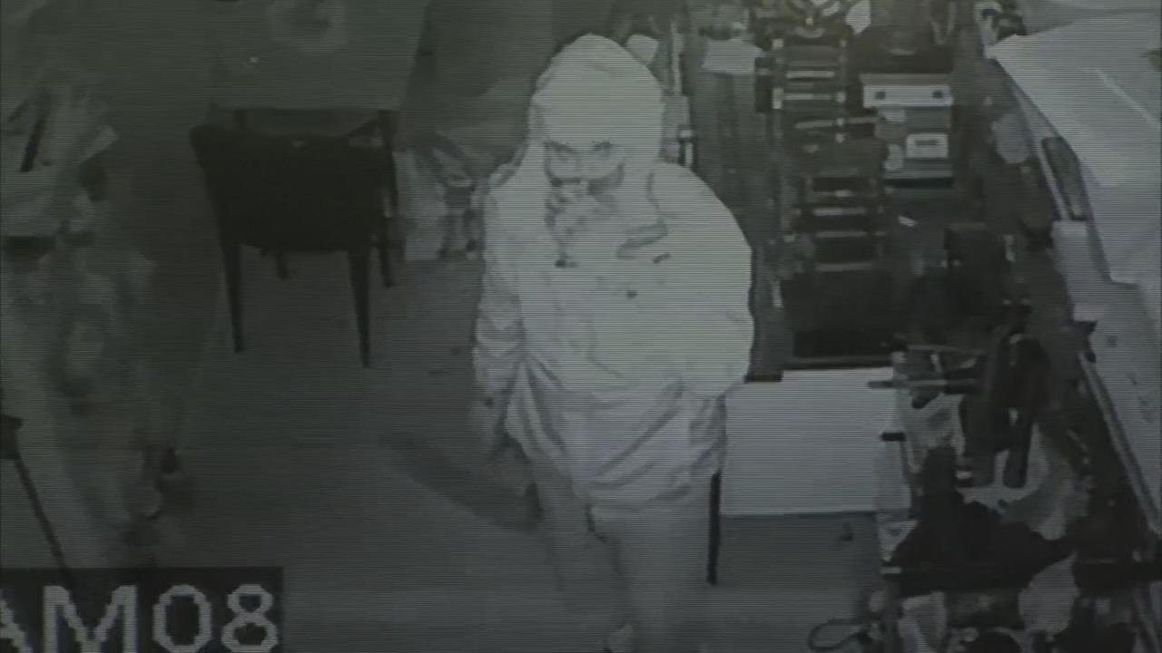 Cảnh sát cung cấp hình video an ninh cho thấy một trong hai tên trộm đột nhập tiệm Kim Thành vào đêm Chủ Nhật, 19 tháng Ba, 2017.
