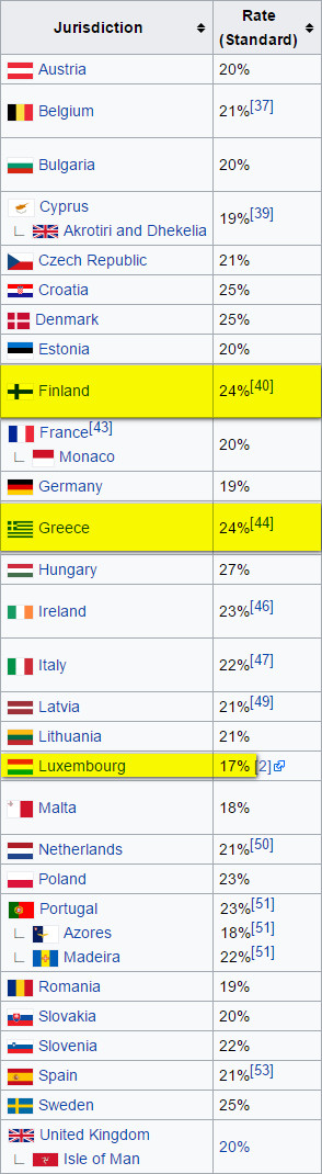 VAT ở Âu từ 17% (Luxembourg) đến 27% (Hungary)