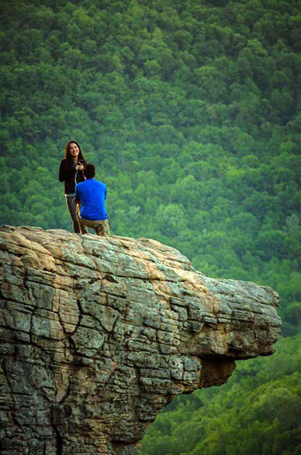 “Thế rồi họ đi bộ đến mỏm đá Hawksbill Crag. Đứng nhìn loanh quanh một vài phút và rồi chuyện đó xảy ra. Người nam đã rút ra một chiếc nhẫn, quì gối đằng sau lưng cô nàng. Cô ta quay lại rồi bắt đầu khóc trong sự cảm động, và ôm anh ta. Chắc chắn là cô đã đồng ý và mọi chuyện diễn ra suôn sẻ.”