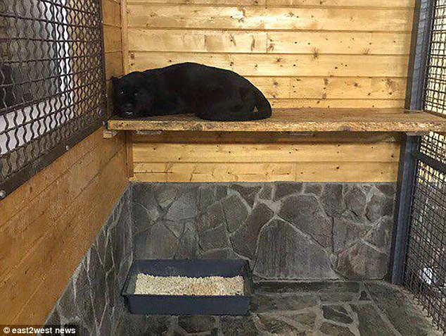 Báo đen tên Milan trong vườn thú của ông Sergey Knyaginichev.