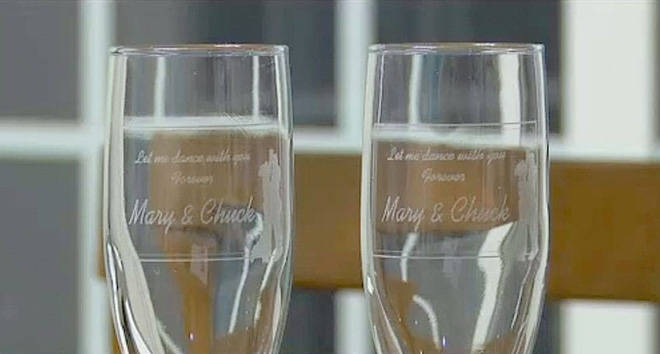 Vì sự trùng hợp rất dễ thương đó, gia đình Felker đề nghị tặng cho Chuck và Mary một món quà mang ý nghĩa rất lớn, đó là cặp ly uống rượu champagne kỷ niệm của bố mẹ họ với dòng chữ khắc: “Let me dance with you forever - Mary & Chuck” (tạm dịch: Hãy để anh nhảy cùng em mãi mãi - Mary & Chuck).