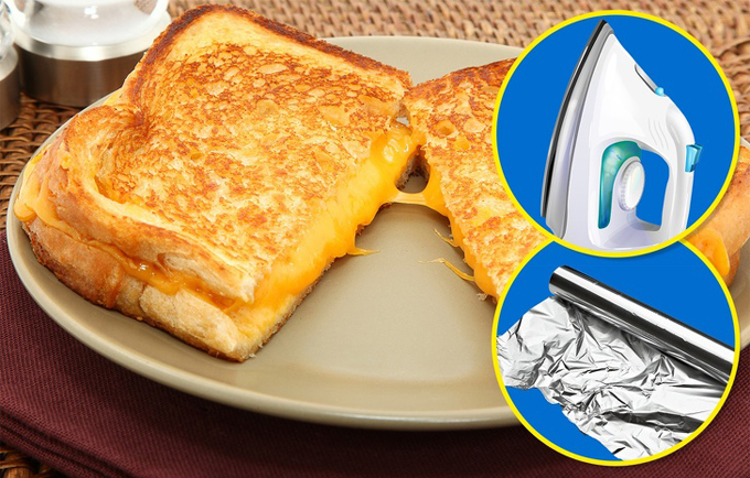 Nếu trứng chưa đủ cho bữa ăn nhẹ thì bạn có thể mua thêm bánh mì lát, thịt nguội và phô mai cũng rất sẵn ở cửa hàng tiện lợi, sau đó gói trong giấy bạc và ủi bàn là lên trên. Chỉ sau 30 giây, bạn đã có món bánh mì nướng phô mai ngon tuyệt.