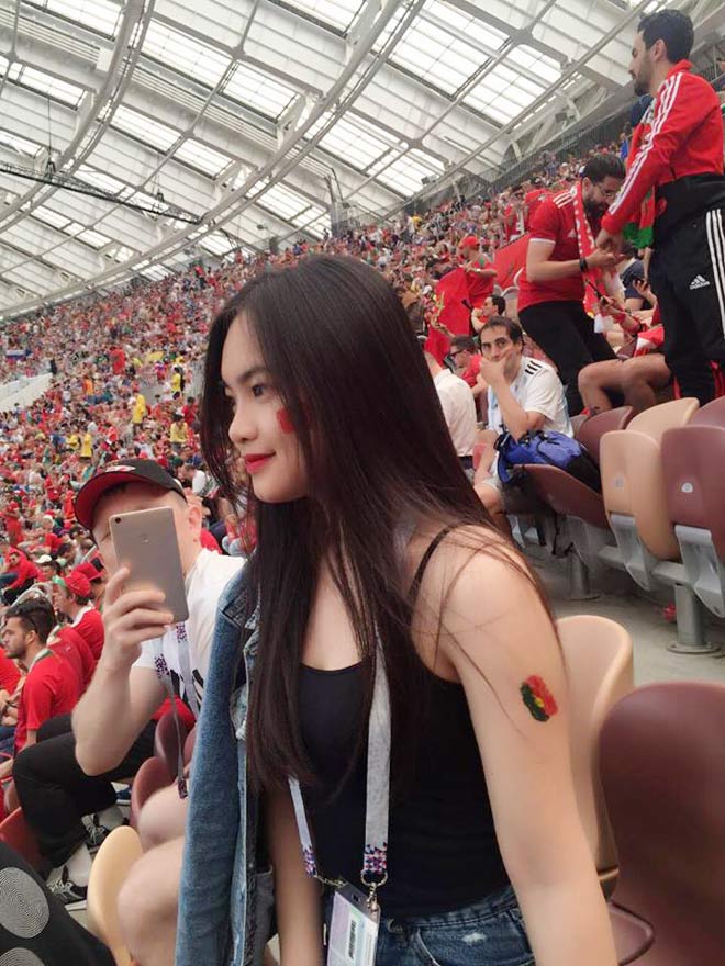 Chính bởi thế mà Bùi Thu Giang (sinh năm 1999, quê Hải Dương) khiến nhiều người phải ghen tị khi được đến Nga xem bóng đá. Hình ảnh cô nàng ngồi trên khán đài Luzhniki (thành phố Moscow, Nga) say sưa theo dõi trận đấu giữa Bồ Đào Nha và Moroco (diễn ra ngày 20/6) được dân tình lan truyền “chóng mặt”.