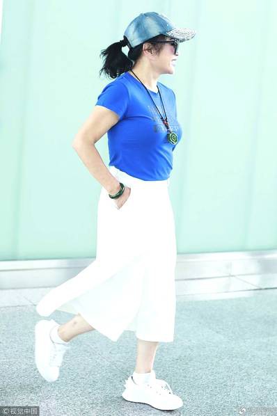 Lưu Hiểu Khánh lọt vào ống kính của giới săn tin tại sân bay ở Bắc Kinh, Trung Quốc, ngày 27/9. Bà thu hút những người xung quanh bởi thần thái rạng ngời và trẻ trung.
