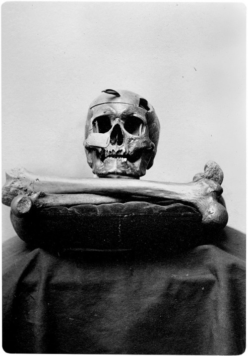 Biểu tượng của nhóm kín Skull and Bones được trưng bày tại Đại học Yale - Ảnh: NYT
