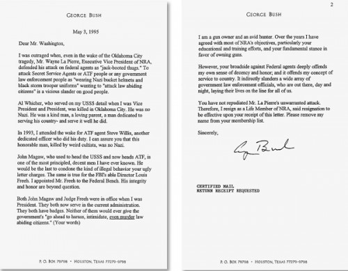 Nhưng vào năm 1995, ông Bush đã viết một bức thư gửi hiệp hội này, thể hiện quan điểm cá nhân ngược lại.