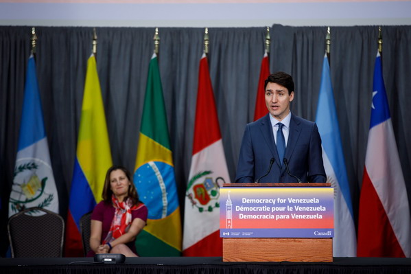 Thủ tướng Canada Justin Trudeau kêu gọi lập lại nền dân chủ cho Venezuela. "Người dân Venezuela cần sự giúp đỡ của chúng ta cũng như cộng đồng quốc tế. Đó là lý do tại sao hôm nay, Canada triệu tập một cuộc họp khẩn cấp với các quốc gia Mỹ Latinh Lima để hỗ trợ Tổng thống lâm thời Juan Guaidó, và tuyên bố cam kết của chúng ta giúp đỡ Venezuela khi họ khôi phục nền dân chủ cho đất nước của họ."