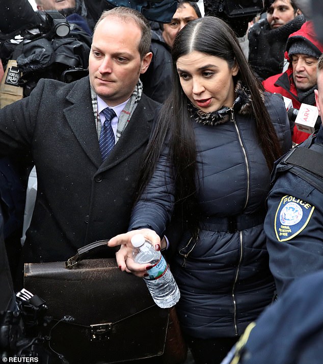 Emma Coronel Aispuro, 29 tuổi, vợ của El Chapo có mặt tại phiên tòa. Sau khi tòa tuyên án có tội, El Chapo quay sang nhìn vợ trìu mến và gửi một nụ hôn gió. Emma cũng cười lại nhưng sau đó bật khóc. Cả hai đã cưới nhau khi cô 18 tuổi.
