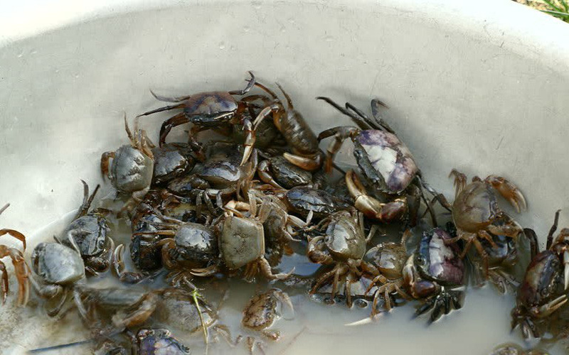 – Cua đồng : rửa sạch, cho vào rổ sóc qua. Sau đó tách riêng phần mai với yếm ra, để phần thịt riêng. Khêu phần thịt cua để riêng.