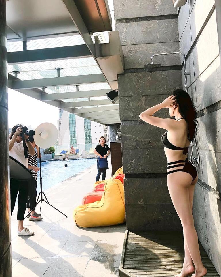 Bất ngờ nhất là hình ảnh hậu trường được chia sẻ, từ góc chụp phía sau tôn lên những đường cong nóng bỏng của Phương Oanh, đặc biệt là vòng 3.