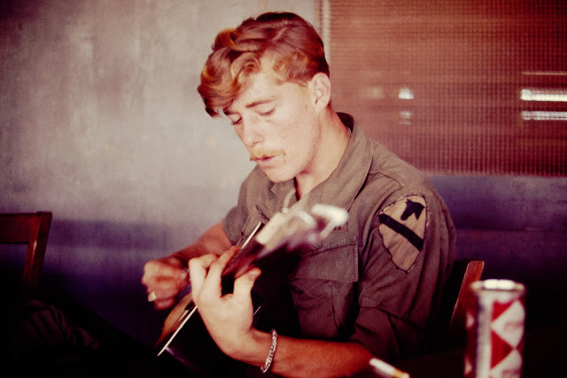 Người lính chơi đàn guitar. Ảnh: The Vietnam Slide Project.