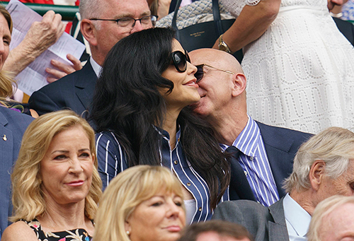 CEO Amazone công khai tình tứ bạn gái ngay trên khán đài Wimbledon. Jeff Bezos và bạn gái tin đồn lần đầu công khai xuất hiện cùng nhau tại một sự kiện, 7 tháng sau khi tỷ phú Amazon tuyên bố ly hôn vợ.