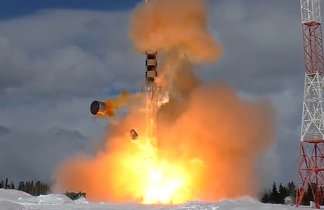 Một vụ thử tên lửa đạn đạo liên lục địa Sarmat của Nga. Ảnh: Sputnik