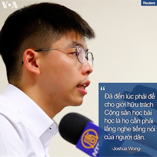 Trả lời cho câu hỏi “Phải chăng mục tiêu nhắm đến là lật đổ Đảng Cộng sản Trung Quốc?”, Joshua Wong chỉ nói “Đã đến lúc phải để cho giới hữu trách Cộng sản học bài học là họ cần phải lắng nghe tiếng nói của người dân”.