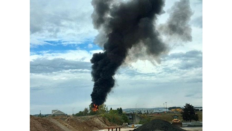 Sau khi chiếc B-17 bị rơi ở cuối đường băng, một làn khói đen lớn bốc lên từ hiện trường.