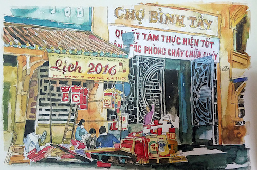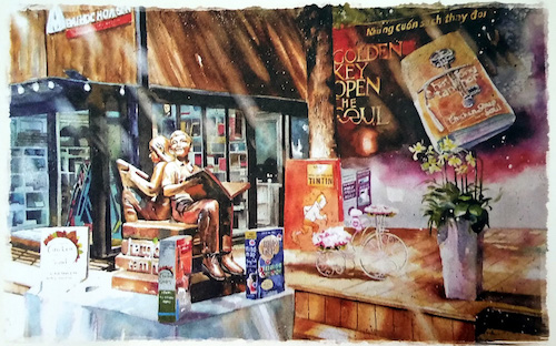 Và thành quả trong ba năm thực hiện mong muốn ấy nay đã hiện diện trên kệ sách dành cho bạn đọc nhân dịp xuân về: tập sách gồm tranh màu nước và ký họa mang tên Cảnh sắc phố thị Sài Gòn - Chợ Lớn (Phương Nam và NXB Thế Giới).