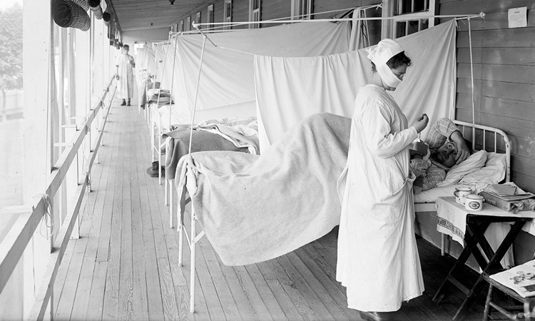 Bệnh nhân cúm được điều trị tại bệnh viện ở Washington năm 1918. Ảnh: Library of Congress.
