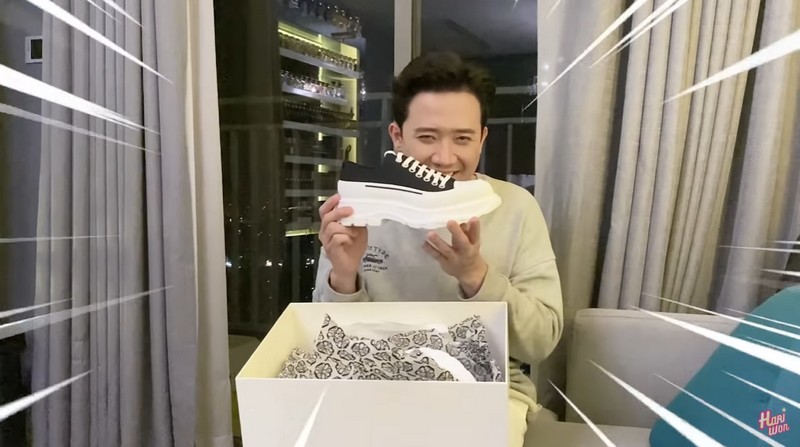 Vào dịp đầu năm 2020, Trấn Thành cũng vừa khoe món quà được Hoa hậu tặng khiến Hari Won cũng phải ngậm ngùi ghen tị. Đúng với sở thích sưu tầm giày hiệu của Trấn Thành, Hoa hậu Thu Hoài đã rất tinh tế khi đặt mua mẫu mới nhất của hãng giày hiệu được nhiều người yêu thích. Xuất hiện trong clip của Hari Won, Trấn Thành đã không giấu được niềm vui khi sở hữu đôi sneaker 16 triệu đồng, là món quà đặc biệt từ bạn thân.