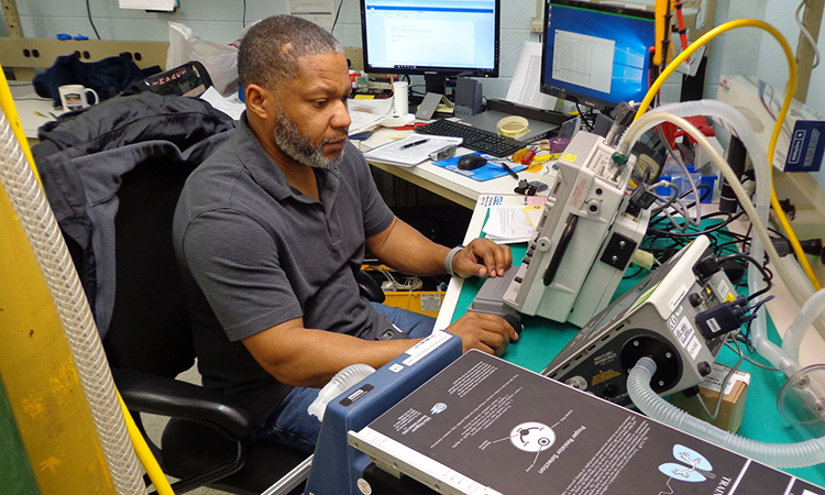 Chuyên gia thiết bị y sinh kiểm bảo dưỡng một máy thở được quân đội Mỹ xuất kho để hỗ trợ đối phó Covid-19 tại kho Tobyhanna, bang Pennsylvania ngày 23/3. Ảnh: US Army.