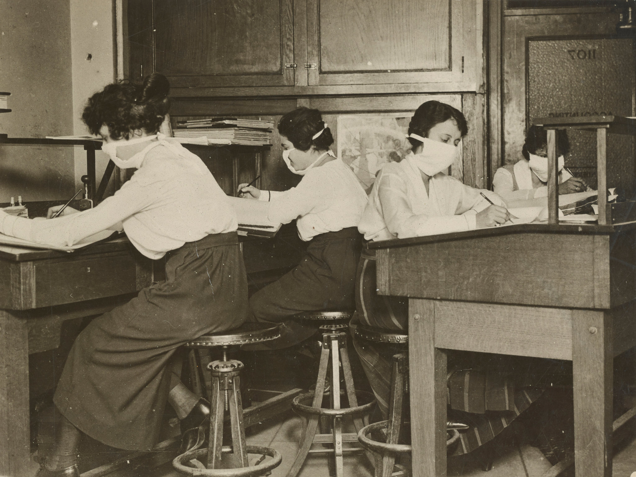 Nhân viên công sở đeo khẩu trang trong dịch cúm Tây Ban Nha tại New York (ảnh: NY Times)