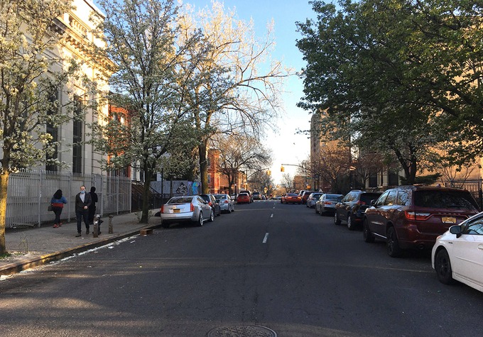 Đường phố Brooklyn, New York chỉ lác đác vài người đi bộ trong sáng 8/4. Ảnh: Nhân vật cung cấp.